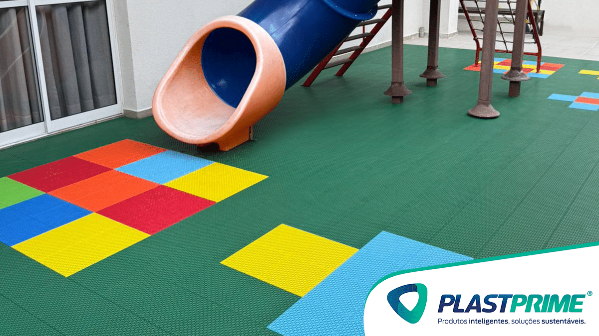 Mais do que segurança, o piso emborrachado da Plastprime proporciona um visual colorido, moderno e harmonioso. As placas podem ser combinadas em diferentes cores e formatos, criando desenhos lúdicos que estimulam a imaginação das crianças.