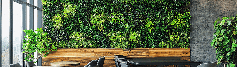 Ambientes onde o verde é puramente decorativo ou onde não é possível manter plantas vivas.