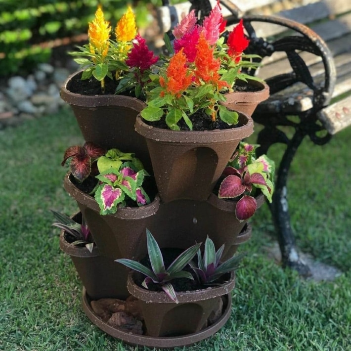 Sim! Essa é a vantagem dos Vasos Empilháveis. Você pode criar lindos jardins ou hortas verticais em um pequeno espaço.